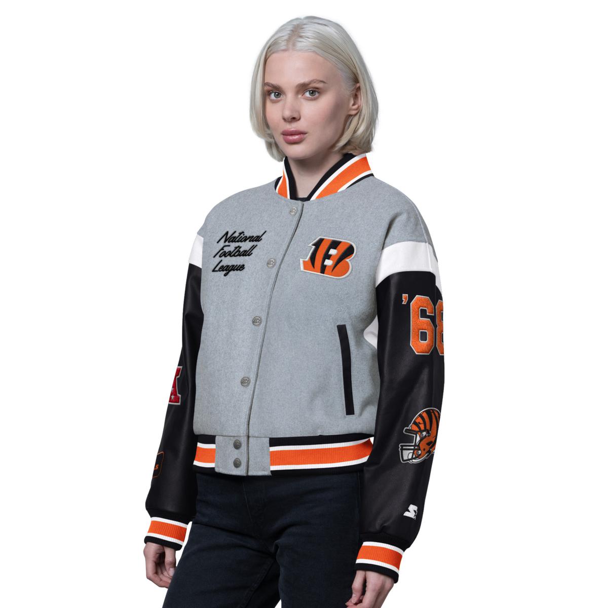 Officially Licensed NFL Starter Women's Cropped Varsity Jacket by Glll - Bengals