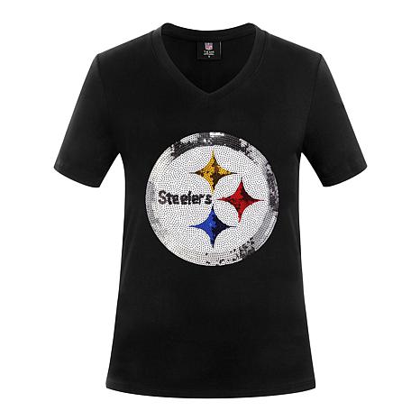 Officially Licensed NFL Women's Sequin Logo Tee from Fabgating by Cucé - Steelers
