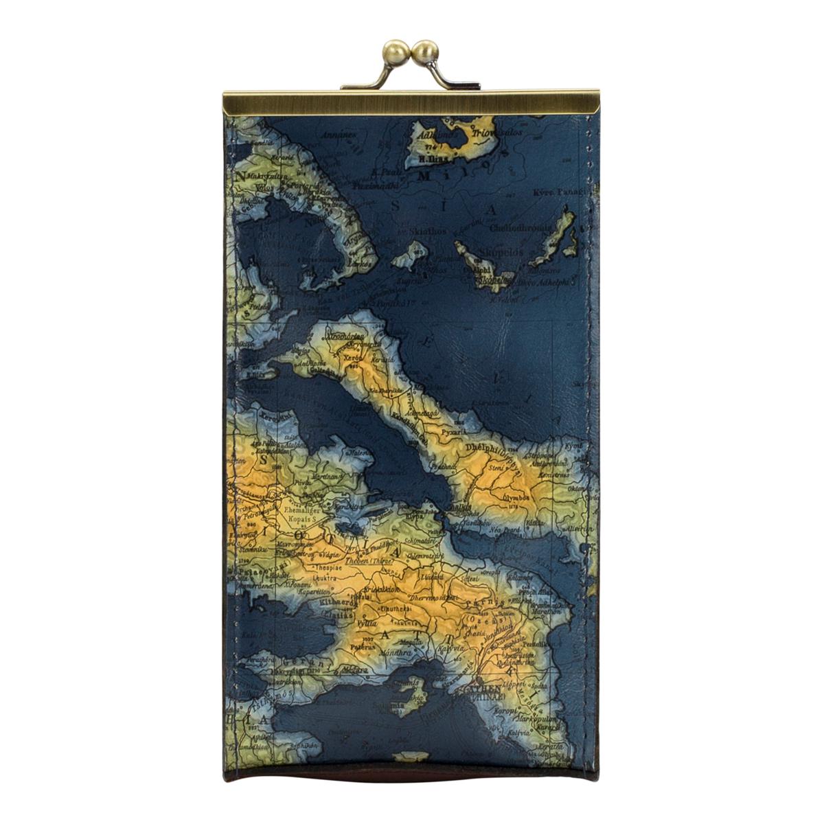 This elegant leather eyeglasses case features a stylish kiss lock closure at the top, offering protection and a chic way to store your eyewear.
