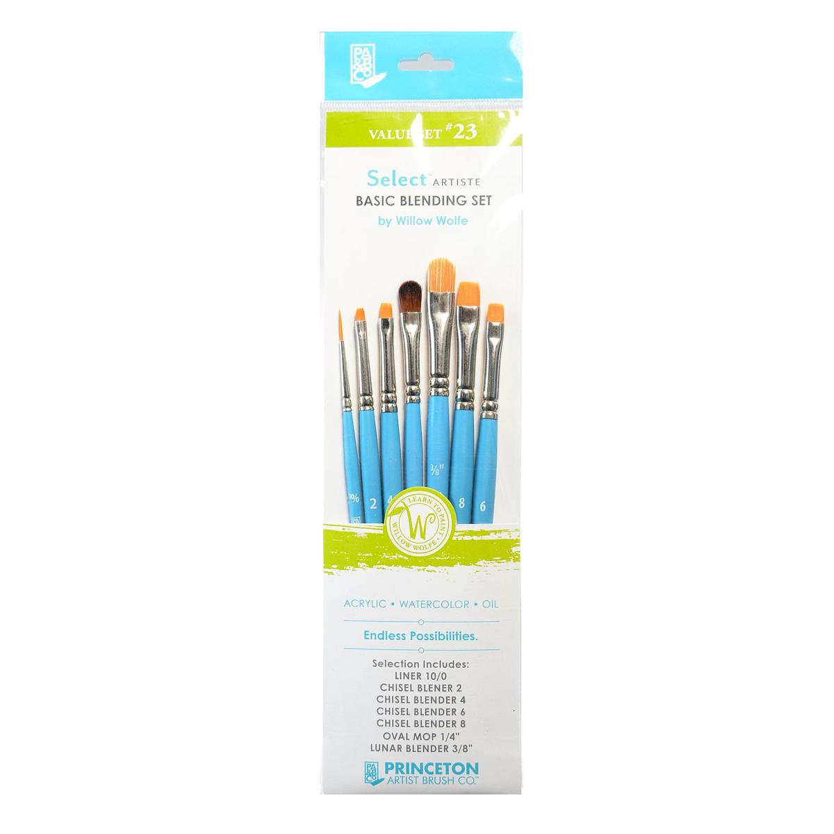 Princeton Select Artiste Brush Sets Select Value Set #23 - 7 Piece, Liner 10/0, Chisel Blender 2, Chisel Blender 4, Chisel Blender 6, Chisel Blender 8, Oval Mop 1/4", Lunar Blender 3/8"