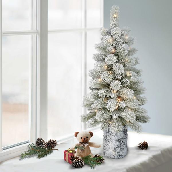 Puleo International 3.5' Potted Flocked Norwegian Pine Tree with 91 Tips and 50 Warm White LED Lights