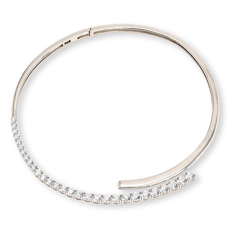 - Cuff-style collar; prong-set, graduated round Absolute simulated diamonds on one end