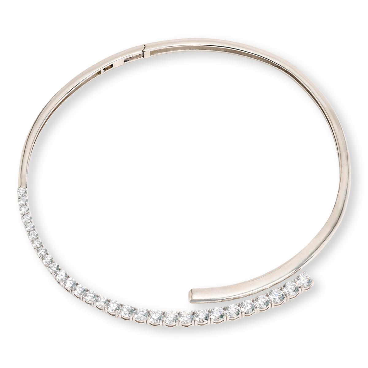 Make a move for modern classics. A sleek, cuff-inspired design and graduated simulated diamonds give this collar necklace a feeling that's dynamic, current. It's a wonderful way to deepen your collection of forward-thinking staple styles.
