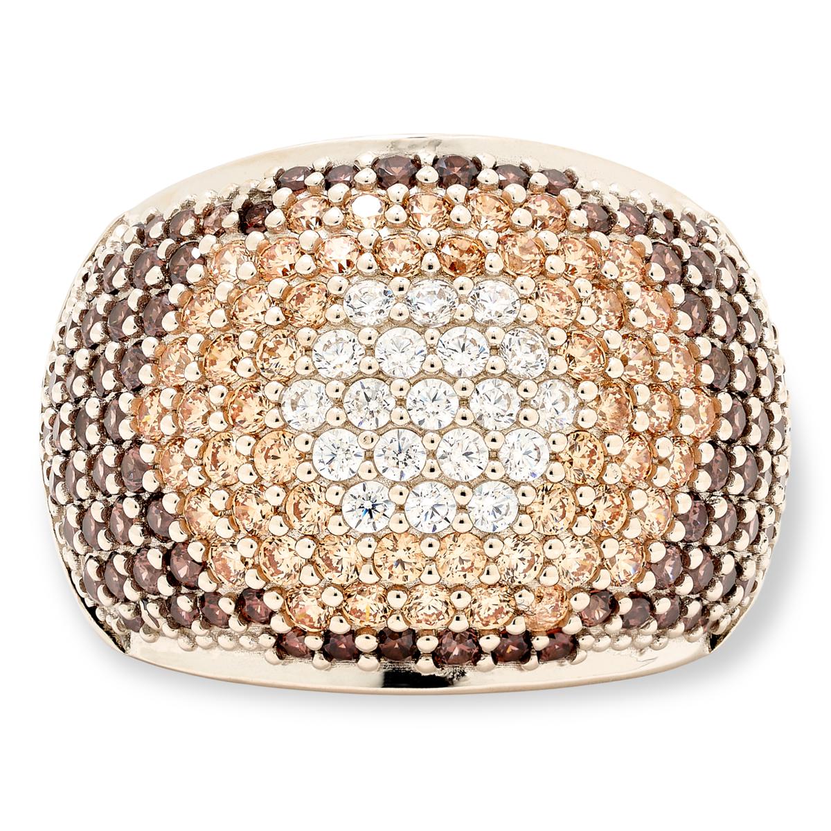 - Pave'-set, round clear and champagne Absolute simulated diamonds encrust surface of ring's domed table and create Mocha Mousse ombre'-inspired design