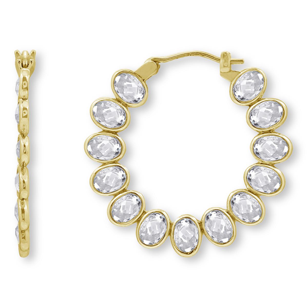 This forward-facing loop features a shining chorus line of bezel-set, oval simulated diamonds. Sleek and modern, the contemporary wreath design is great for just about any special-occasion outfit. Plus, it's a versatile style you can also showcase with everyday looks.