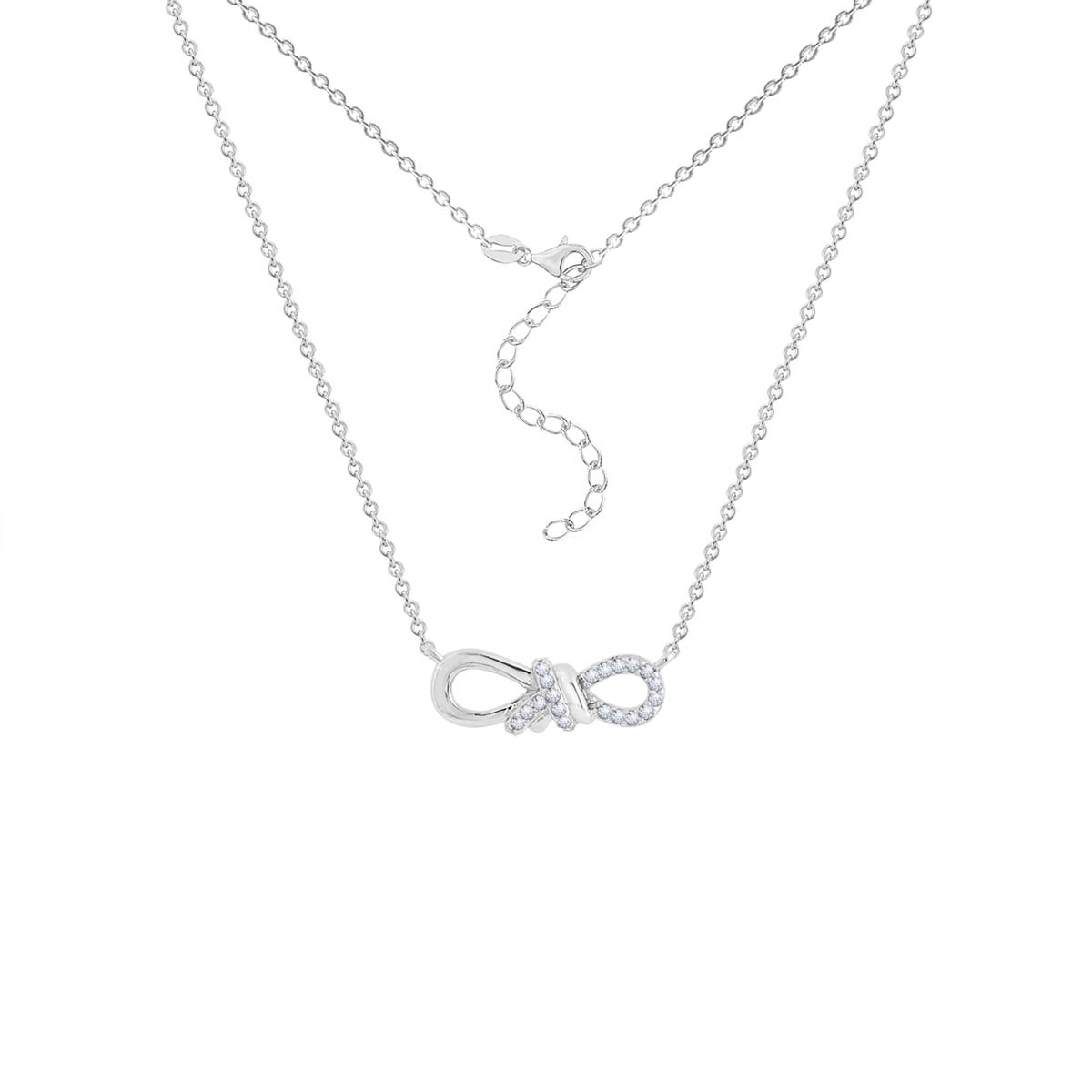 Simulated diamonds bring to sparkling life this sterling silver necklace's bow design. Sweet, simple and effortlessly modern, it's a look that's fab on its own and layered with other necklaces.