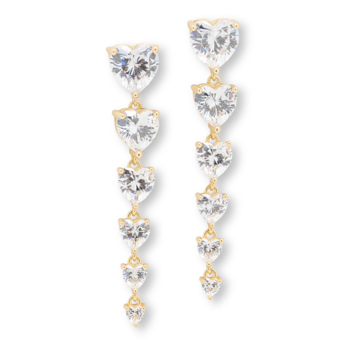 An elegantly tapered line of heart-cut simulated diamonds forms this dangle earring from Radiance. A romantic take on traditional drop designs, the earring is "forever" jewelry that's perfect for every jewelry wardrobe.