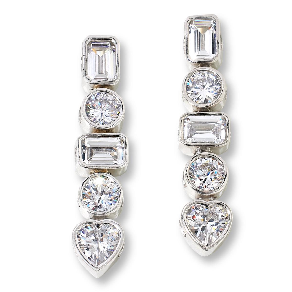 Get your jewelry wardrobe into gorgeous shape. Add the mixed-cut sparkle of Katherine McPhee's dangle to your collection. It's a stone-intensive charmer featuring a filigree-kissed line of rounds, octagonal cuts and heart shapes.
