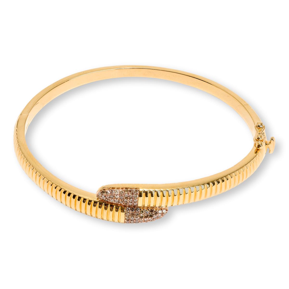 - Gold-plated, bypass-design cuff bracelet with a diamond-encrusted tapered ends