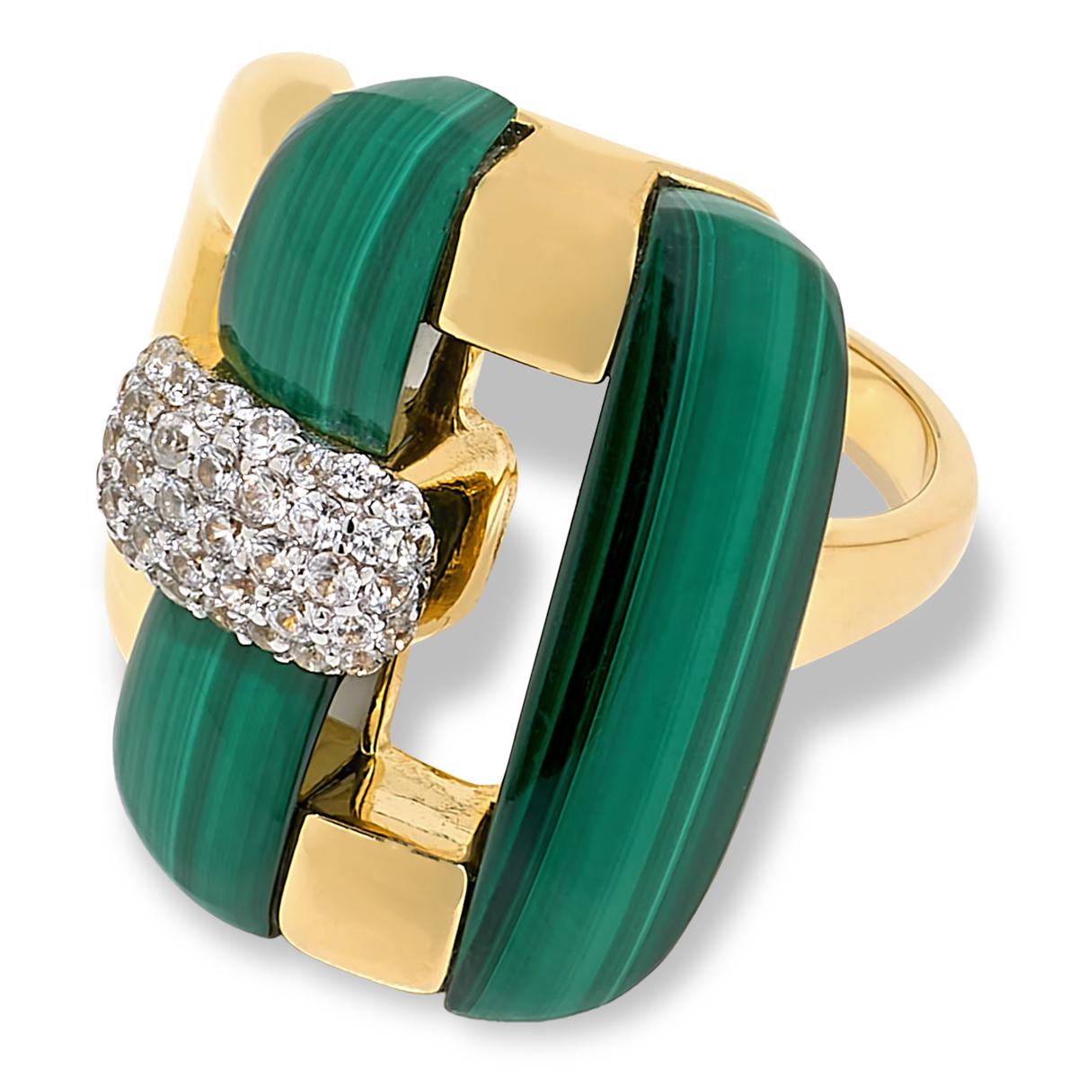 Add a touch of contemporary chic to any ensemble when you accessorize with this gold-plated gemstone ring. The polished piece features your choice of blue lapis or green malachite with the added sparkle of diamond-like white zircons.