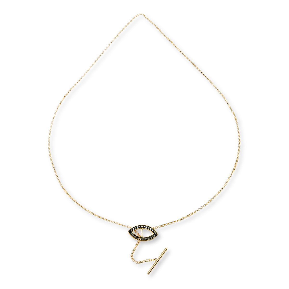 Elevate your style with this stunning toggle lariat necklace featuring a delicate diamond-set evil eye centerpiece. Its adjustable design lets you customize the length for a chic, personalized look. Perfect for adding a touch of sparkling, positive energy to any outfit.