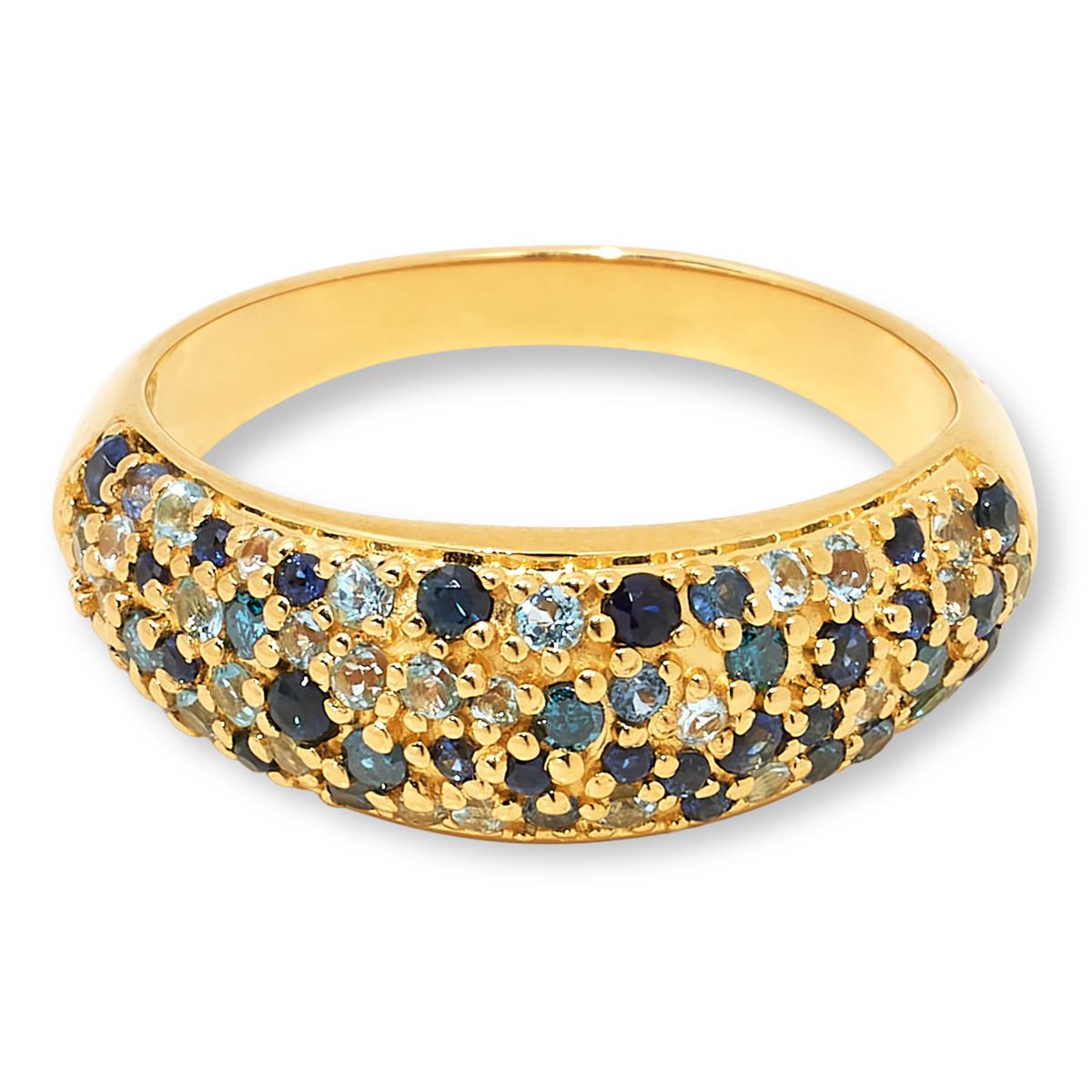- Gold-plated sterling silver band ring with round gemstones accented with round, white diamonds