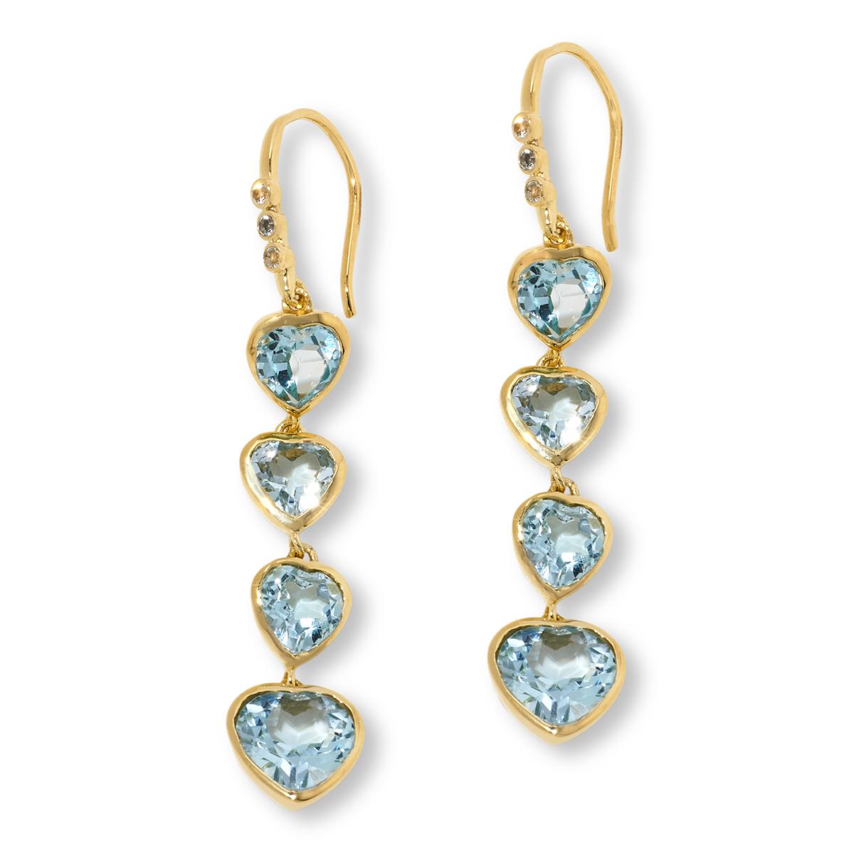 - Earrings have articulated, four-heart dangling drops in choice of colored gemstones