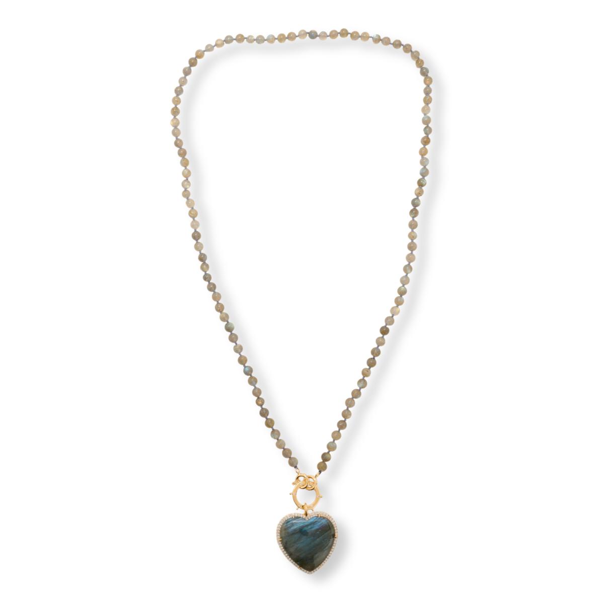 Rarities Labradorite or Moonstone Heart Pendant with Beaded Necklace