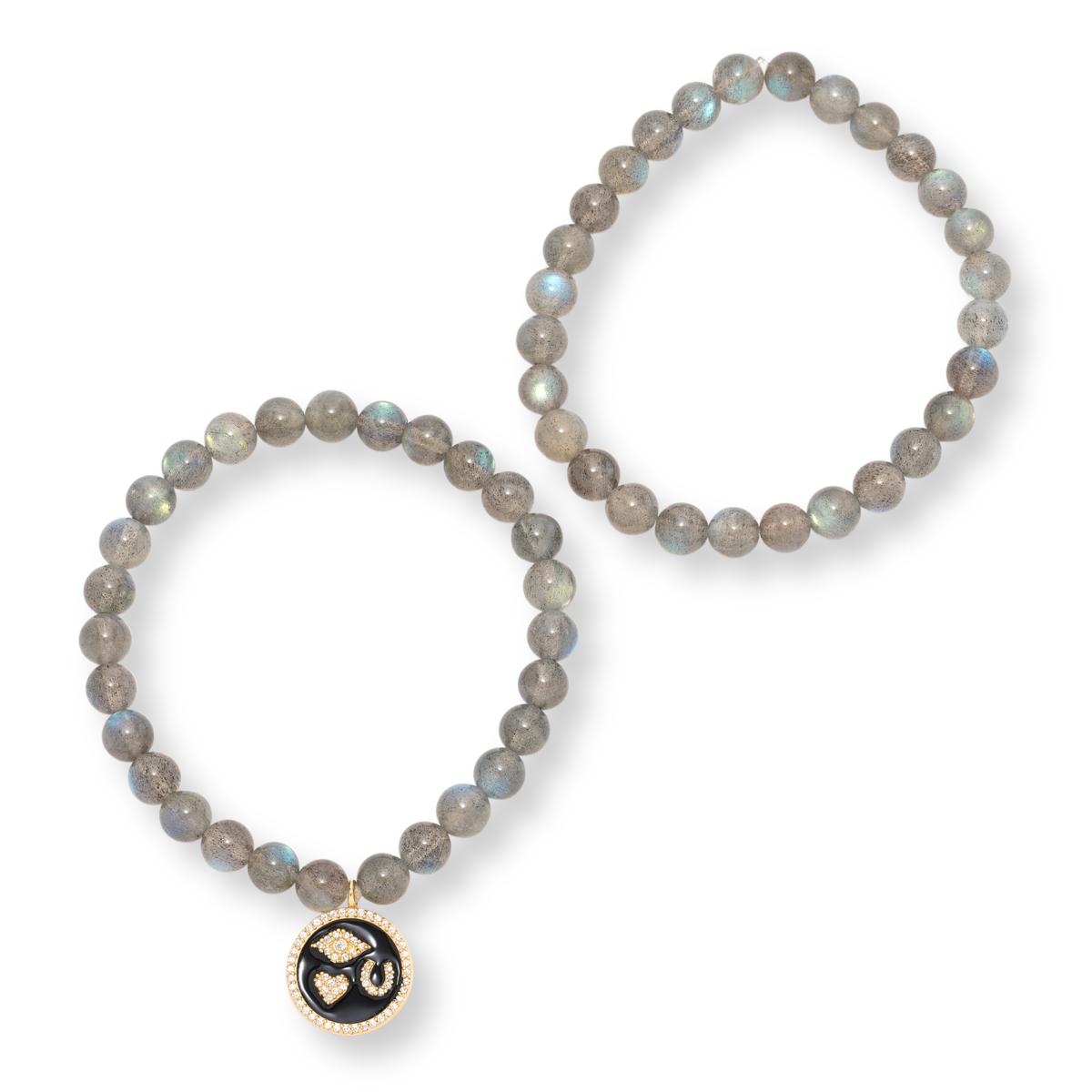 - Labradorite - Gray labradorite bead bracelet; charm - black enamel