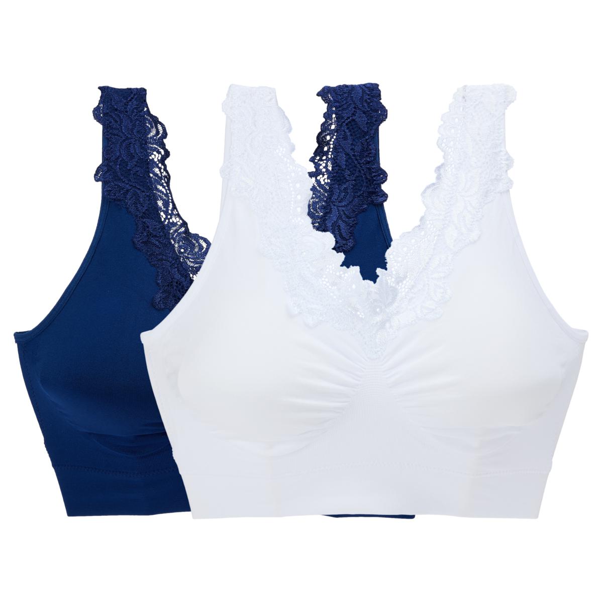 Indulge in ultimate comfort and style with Rhonda's 2-pack seamless bra, complete with light support, a closure-less back and a pretty lace inset! Perfect for all-day wear, whether at work or play, these bras will have you feeling confident and comfortable.