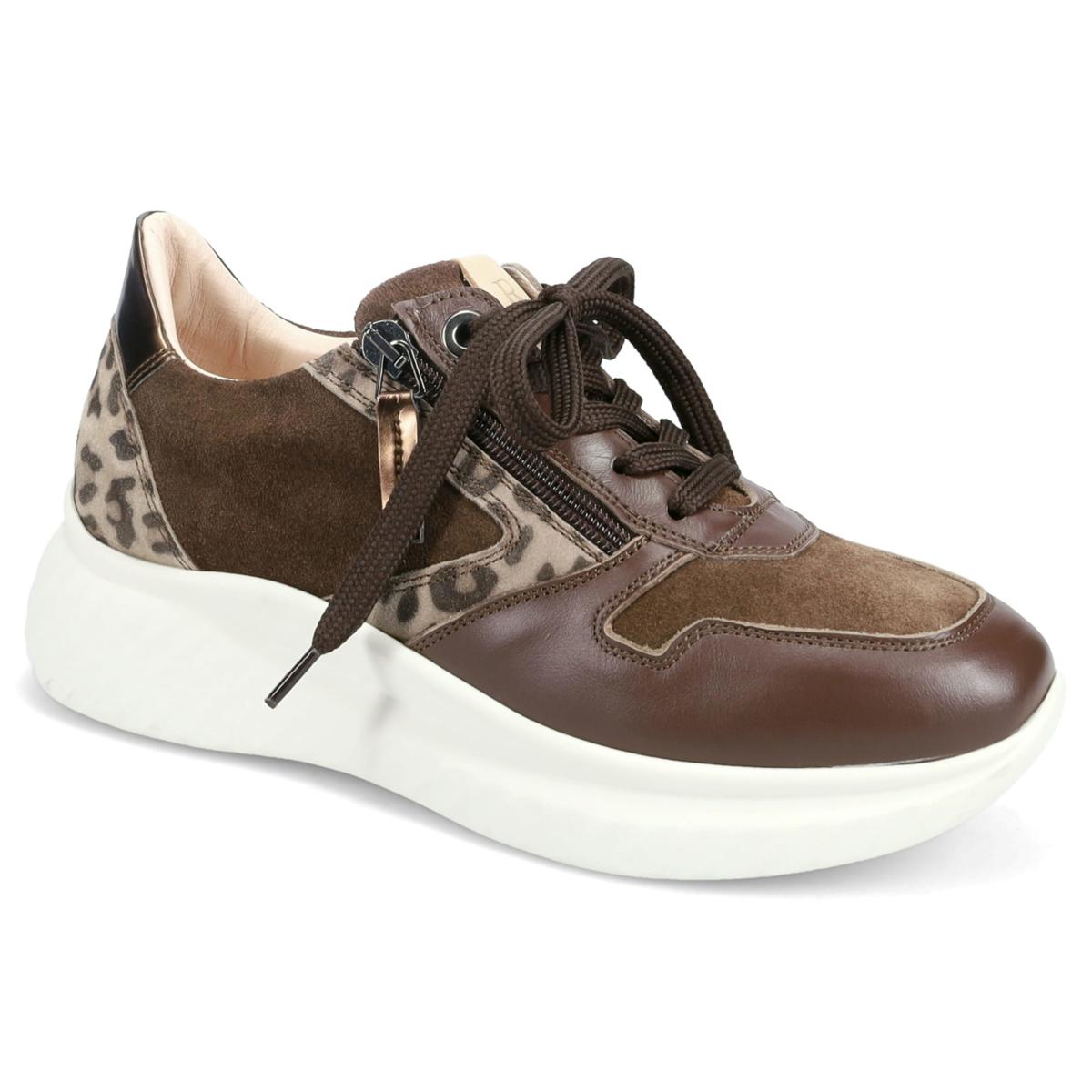 Step out in style with this fashion-forward sneaker that blends suede, smooth calfskin, and leopard-print panels for a bold yet wearable look. Designed for all-day comfort, it features a fully removable footbed with arch and metatarsal support, plus Ron's signature pillow construction for soft, shock-absorbing cushioning. Whether you're running errands or meeting friends, this sneaker keeps you comfortable and stylish throughout your day.