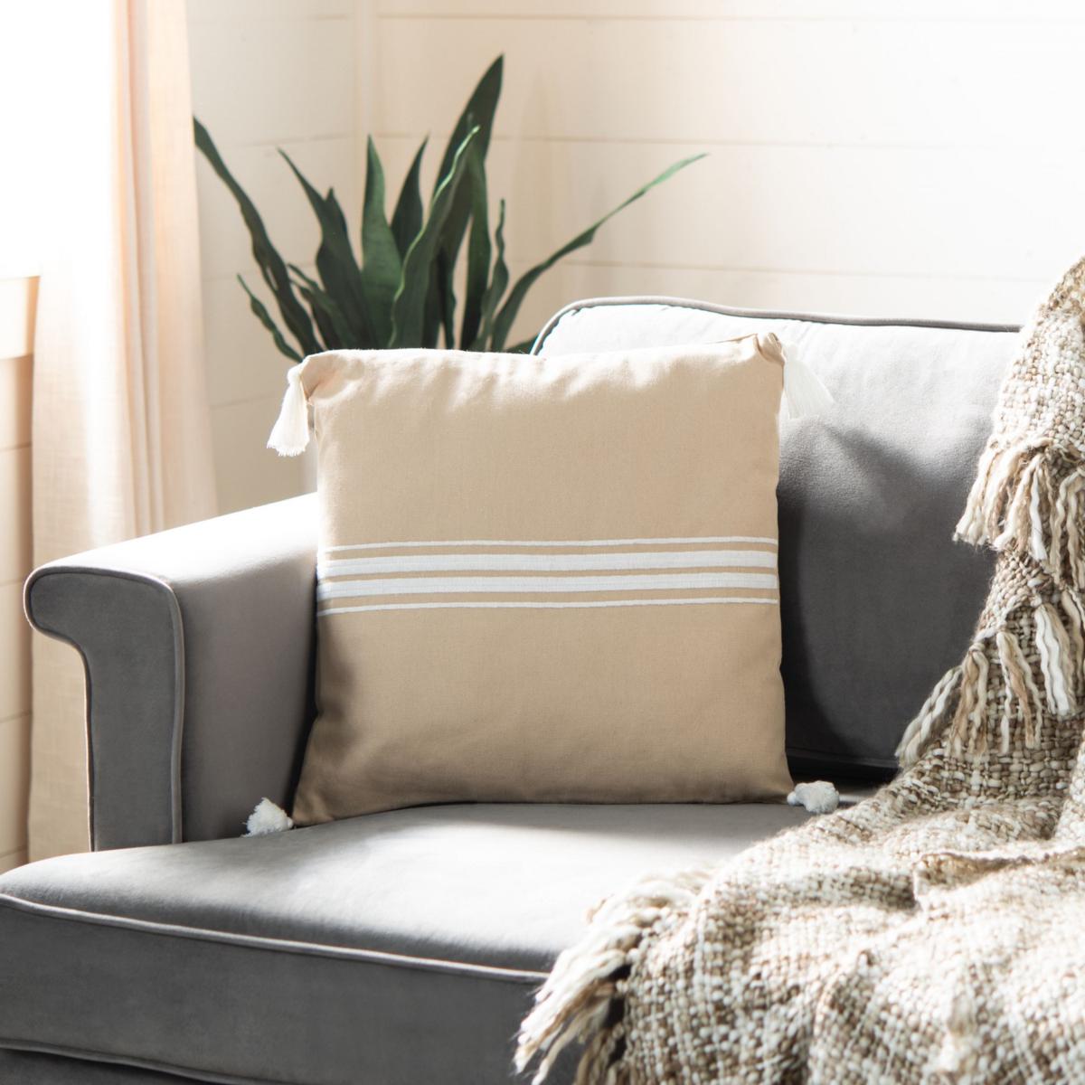 Fancy a life in the fresh air and sylvan fields of the countryside? Charming and cozy, the Safavieh Ralen Pillow updates any space in an instant with its modern rustic style. Its rich beige ensures it blends into any décor, while its stripes create a vibrant disposition matched only by its friendly white tassels.