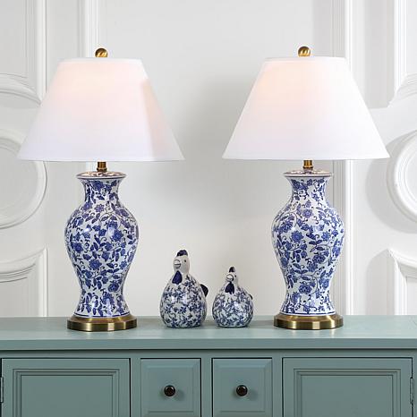 Put a pretty spotlight on your love for floral motifs with this urn-style ceramic lamp duo. A crackled glaze finish and blue and white chinoiserie motif give these lovely lamps an alluring glow. Display them together or in separate rooms to give your décor a timeless, feminine touch.