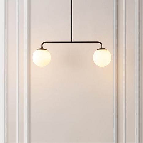 Bring modern elegance to your space with this sleek pendant light featuring a black iron frame and glass shades. Its extendable design lets you customize the height to fit your room perfectly, while the dual light bulbs provide warm, inviting illumination. Ideal for dining rooms, kitchens, or any area needing a contemporary touch, this pendant blends style and function effortlessly.