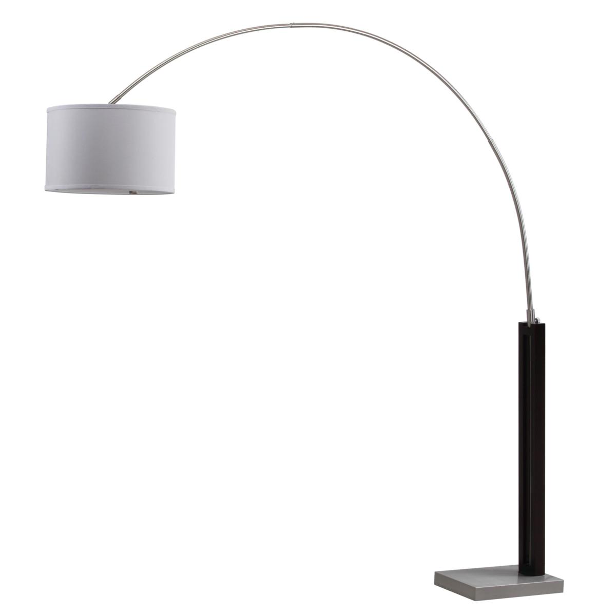 Safavieh Cosmos 83-Inch Arc Floor Lamp Available in Black What you get: 1 lamp Lamp item dimensions: 75" X 16" X 83" Lamp item weight: 44 lbs Lamp shape item height: 10" Lamp base content: Metal and MDF Lamp base color: Black and nickel Lamp shade material: 100% Cotton Lamp shade color: Off white Metal finish: Black and nickel Cord color: Black Cord length: 96" Lighting switch type: On/Off Light bulb base type: E26 Screw Terminal Switch mechanism: Foot Switch Type of bulb included: CFL Max wattage: 13W Lumen: 830 Copy: A handsome combination of contrasting black and nickel finishes makes this arc floor lamp a contemporary design standout. A sculptural curved arm floats gracefully from a sturdy base to create a luxurious ambiance in a transitional living room or study. Diffuser is included. Care instructions: Before cleaning any lamp shade or fixture, disconnect the power source. Wipe with a soft, dry cloth. Avoid the use of chemicals and household cleaners as they may damage the finish. Assembly required: Yes Country of origin: China