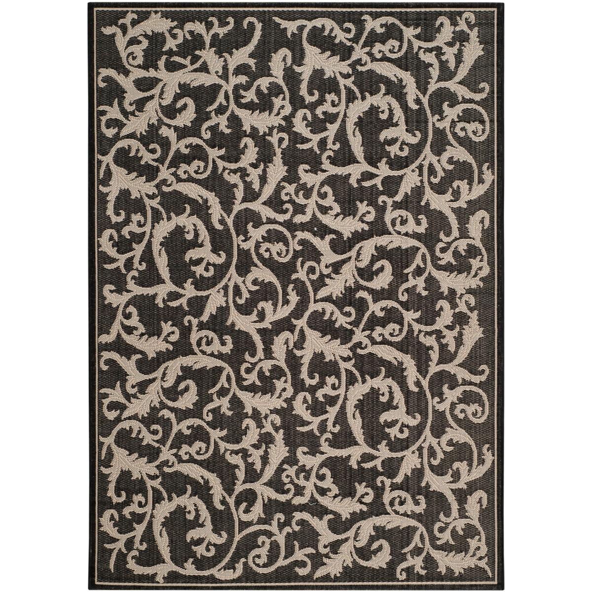 Safavieh Courtyard Gillian Round Rug Available in Black-Sand, Blue-Natural, Brown-Natural, Natural-Brown, Natural-Olive, Olive-Natural, Terracotta-Natural What you get: 1 area rug Rug color: Black-Sand, Blue-Natural, Brown-Natural, Natural-Brown, Natural-Olive, Olive-Natural, Terracotta-Natural Rug construction: Power loomed Rug material: 100% Polypropylene Copy: Arabesque vines swirl across the pile of this stylish indoor/outdoor rug. Perfect for a front porch or busy, high-traffic hallway, this versatile area rug is constructed from power-loomed synthetic yarns that are soft underfoot but still durable and resistant to wear, weather and fading from the sun. Care instructions: Vacuum regularly to prevent dust and crumbs from settling into the roots of the fibers. Avoid direct and continuous exposure to sunlight. Use rug protectors under the legs of heavy furniture to avoid flattening piles. Do not pull loose ends; Clip them with scissors to remove. Turn carpet occasionally to equalize wear. Remove spills immediately. Country of origin: Turkey