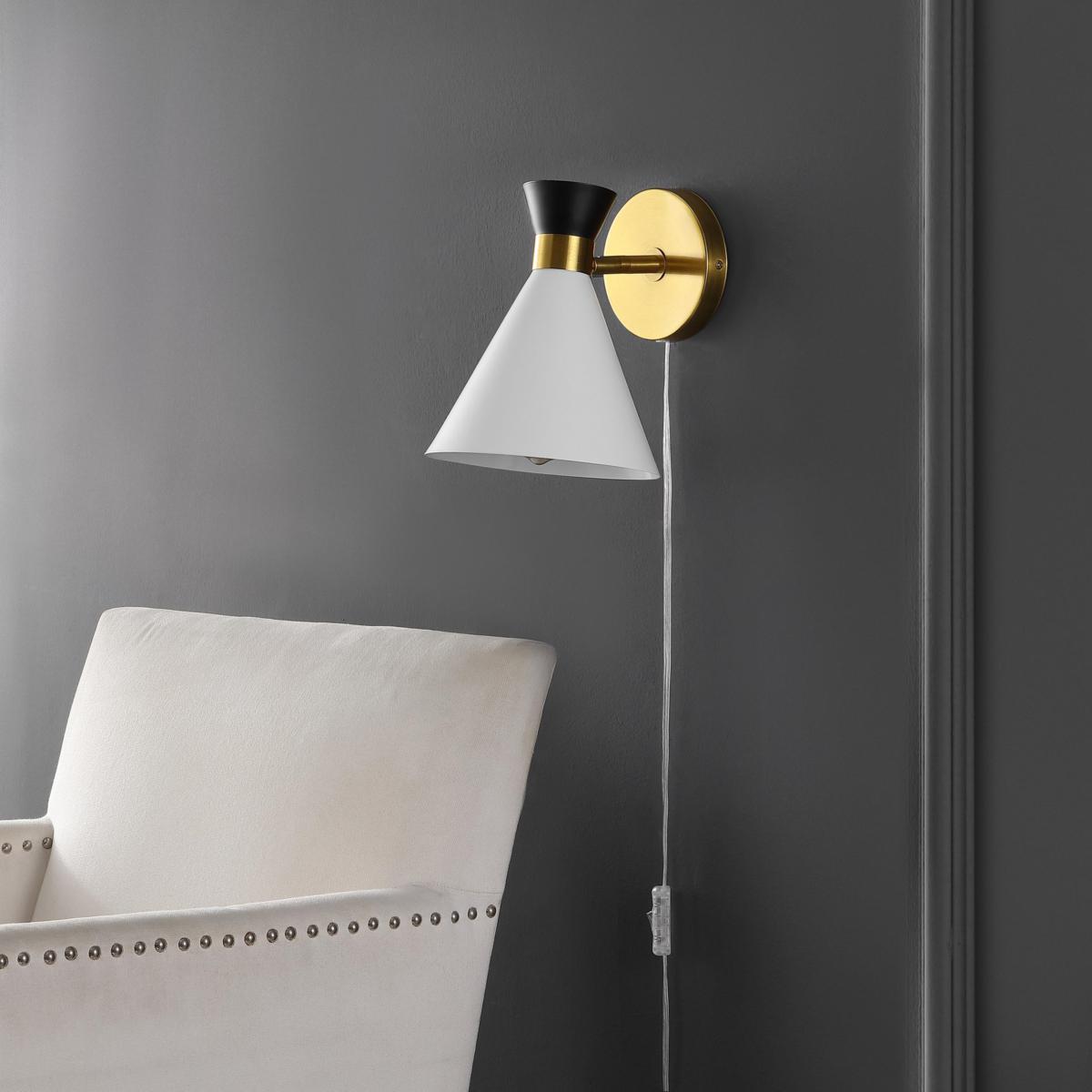 Brighten your home with the Jordie wall sconce, a stylish blend of brass, black, and white hues that adds a versatile multi-colored touch to any room. Crafted from durable iron, it’s perfect for hallways, bedrooms, or living areas, creating a warm and inviting ambiance. Easy to install and maintain, this sconce pairs beautifully on either side of mirrors or artwork to elevate your space effortlessly.