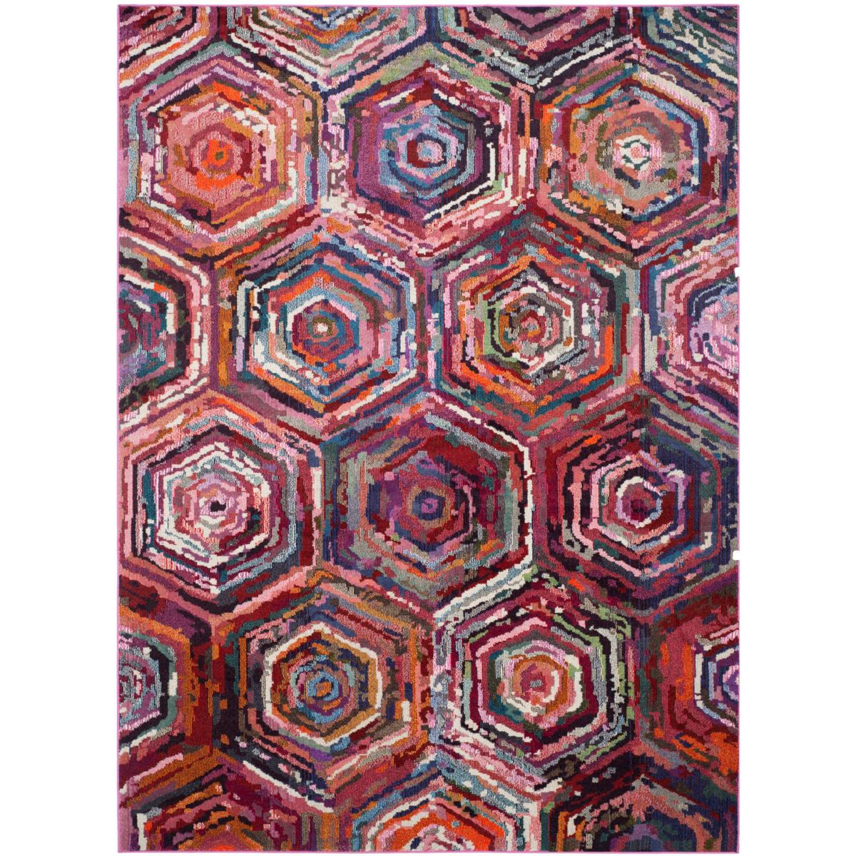 Safavieh Monaco Iris Rug Available in Pink What you get: 1 area rug Rug color: Pink Rug construction: Power Loomed Rug material: 100% Polypropylene Rug pile height: 0.50" Copy: Timeless motifs are brilliantly revived in a rainbow of fashion-forward colors in the metro-modern area rugs in the Monaco collection. Made using durable, easy-care synthetic yarns for vivid colors and textures that will stay beautiful even in busier areas of the home. Care instructions: Vacuum regularly to prevent dust and crumbs from settling into the roots of the fibers. Avoid direct and continuous exposure to sunlight. Use rug protectors under the legs of heavy furniture to avoid flattening piles. Do not pull loose ends; clip them with scissors to remove. Turn carpet occasionally to equalize wear. Remove spills immediately. Packing and shipping may cause temporary creases in area rugs. To remove them back-roll/reverse roll your rug and allow time for the creases to relax. Country of origin: Turkey
