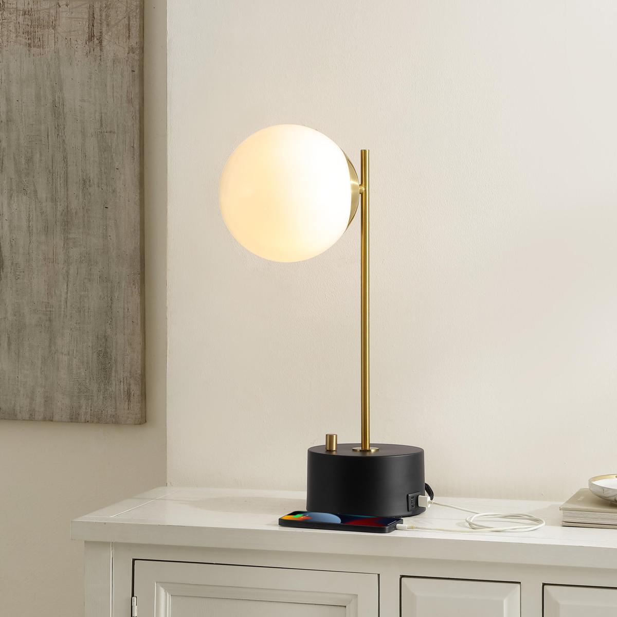 Brighten your space with this sleek and stylish table lamp that blends modern design with practical features. The combination of brass and black finishes adds a sophisticated touch to any room, while the integrated USB port keeps your devices charged and ready. Perfect for living rooms, bedrooms, or offices, it’s a versatile lighting solution that fits your lifestyle.