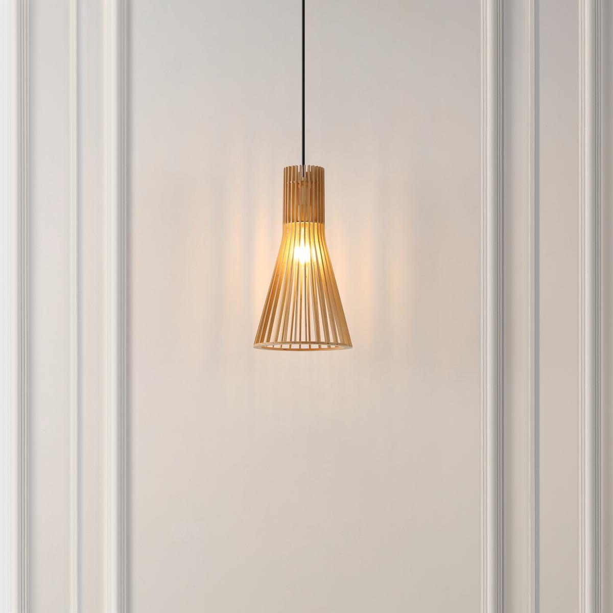 Illuminate your space with this elegant extendable pendant that blends sophistication with functionality. Crafted from natural MDF wood and iron, it adds a warm, natural touch to any room. The adjustable height feature lets you customize the lighting to perfectly suit your space and mood.