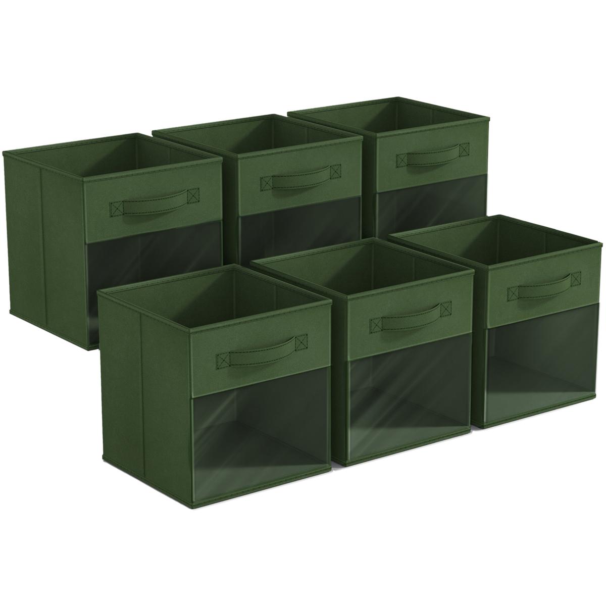 - 6 foldable storage bins with clear window and cardboard bases