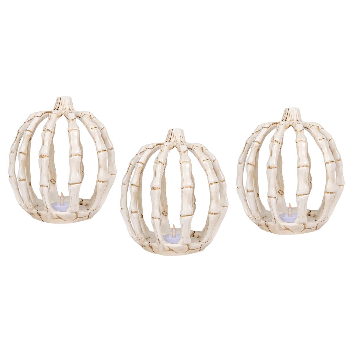 Spooky Lane Set of 3 LED Skeleton Pumpkins