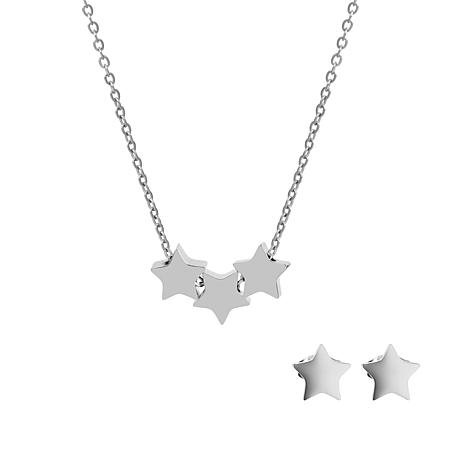 Stately Steel Triple Stars Necklace and Earrings