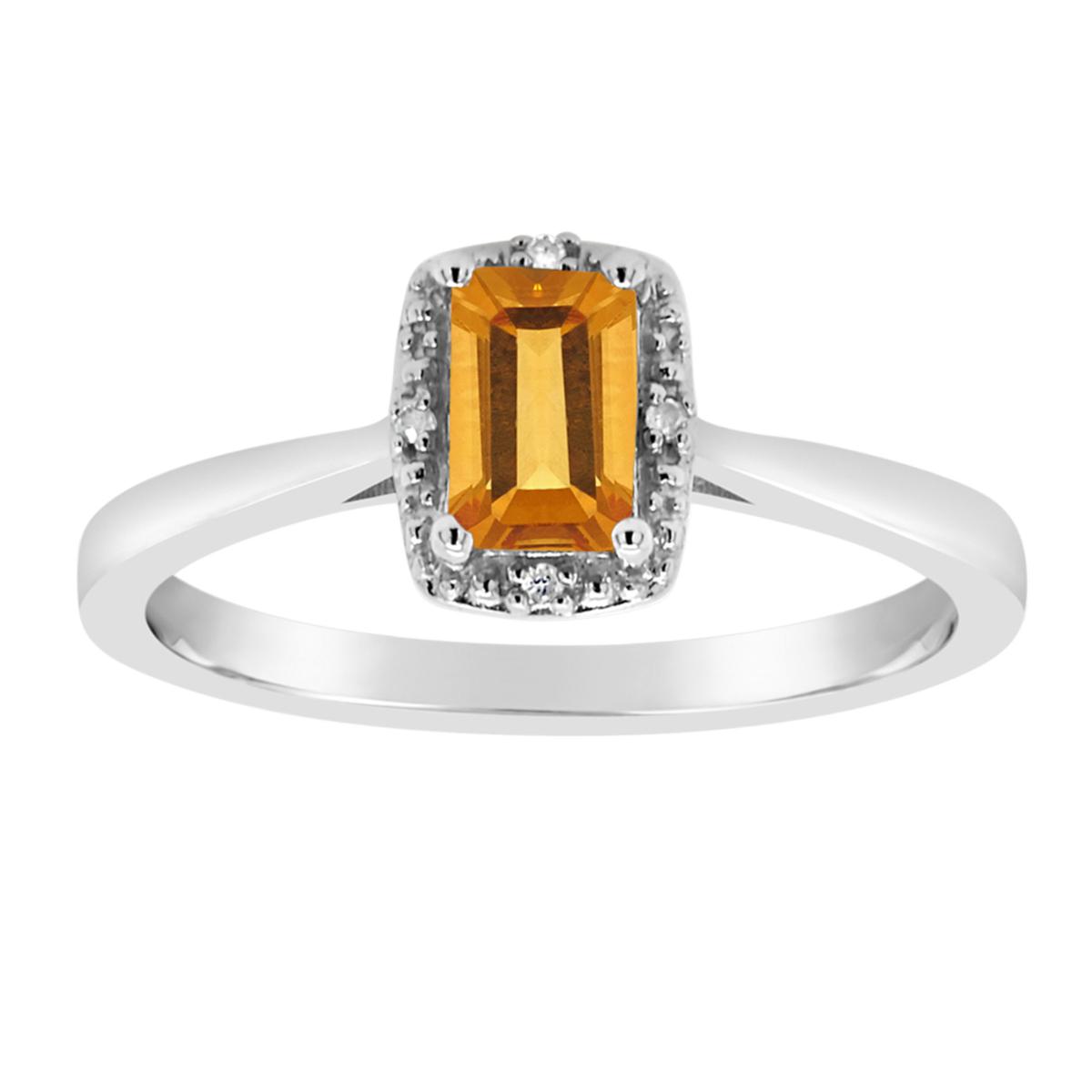 Sterling Silver Gemstone and Diamond Accent 6x4mm Emerald Cut Ring