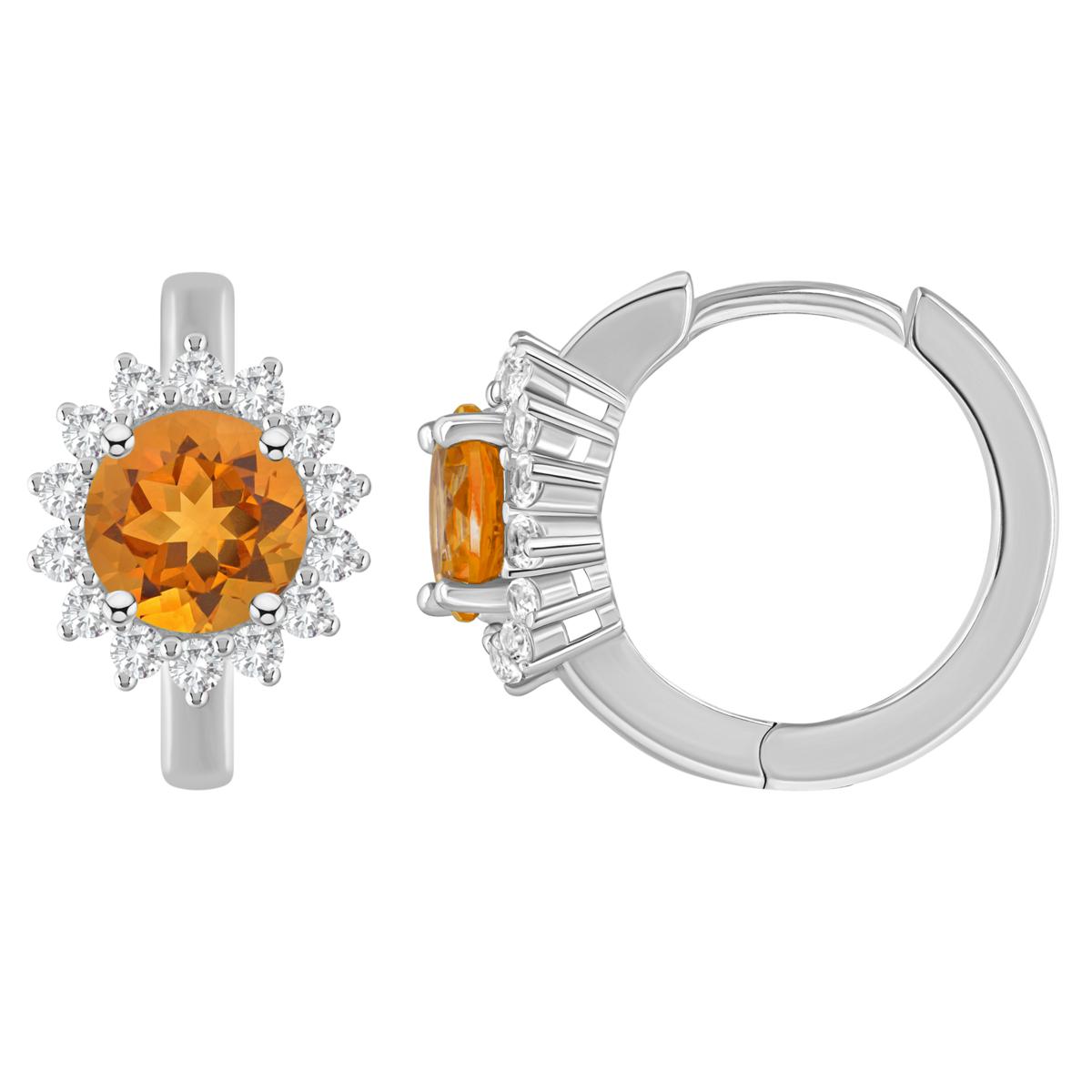 Sterling Silver Gemstone and White Topaz 6mm Round Hoop Earrings