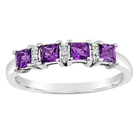 Invigorated with four, colorful, princess-cut gemstones and diamond accents, this beautiful band ring makes an elegant accessory — whatever the occasion!