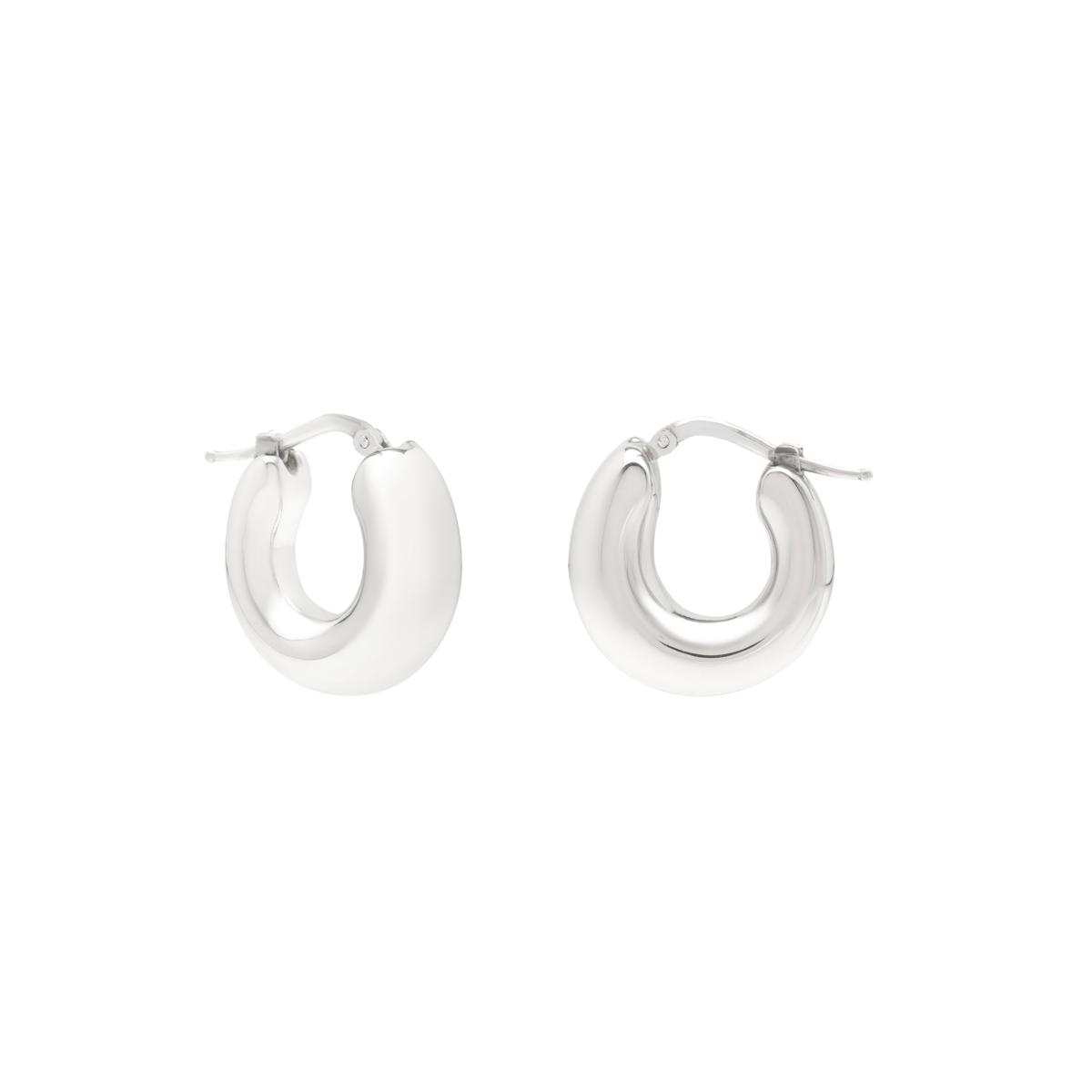 A graduated hoop earring adds a hint of polish and sophistication to your daily style, pairing effortlessly with a crisp blouse or your favorite weekend sweater. The round silhouette gleams with a rhodium finish over sterling silver, and the hinged clasp makes it easy to wear from morning errands to dinner with friends.