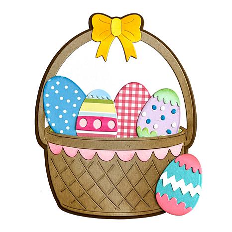 You truly can put all your eggs in one basket with this adorable shaped card. With the included dies you'll be able to easily create different egg designs and fill your basket for spring holidays. This die set creates a standard A2 (4.25x5.5 inches) card in the shape of a Easter basket or use it to create a large Easter basket for any paper or felt craft project, such as banners, scrapbooks, teacher bulletin boards, etc.