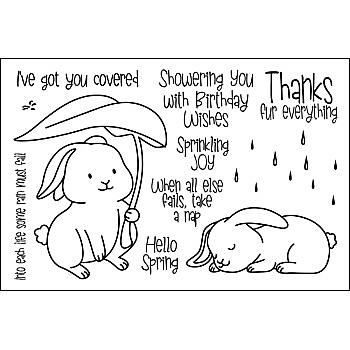 Created specially to coordinate with the gardenbunny2stamp set! This set features a darling sleeping bunny and a bunny taking cover in the spring showers! The bunny with leaf stamp is approximately 2.7 x 3.2 inches.