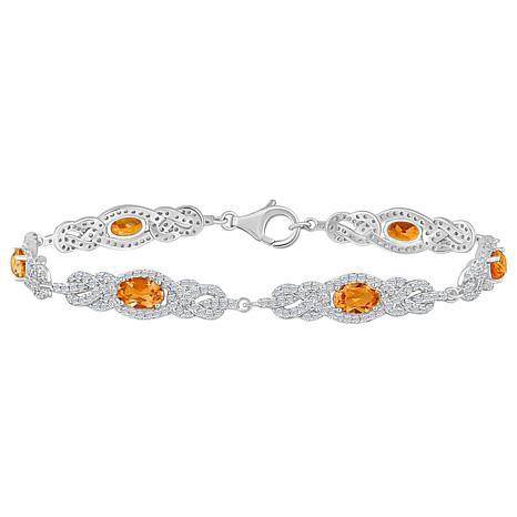 Gorgeous oval gemstones glimmer between elegant knots of white topaz accents to form this classic, sterling silver link design.