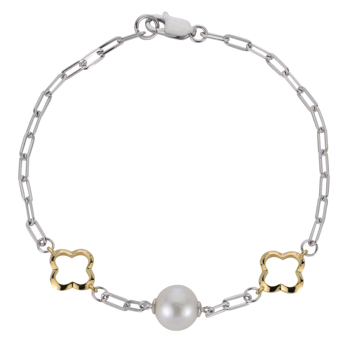A pair of gold-plated clover shapes and a single pearl adorn this single-row, link bracelet. It's an elevated, everyday look that's great for special days, too.