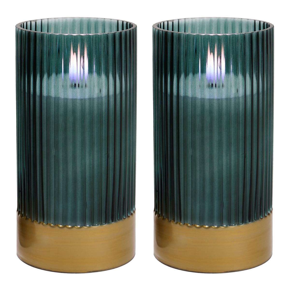 Unmatched Set of 2 Ribbed Glass Flameless Candles
