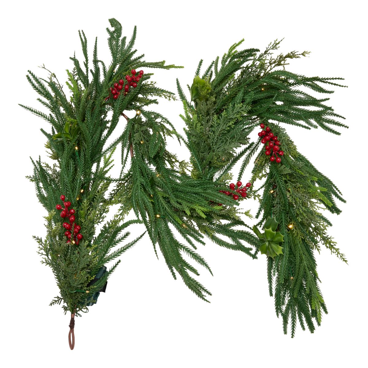 The Winter Lane 6' Illuminated Holiday Garland brings a cozy seasonal glow with its lifelike mix of faux pine greenery and festive berry accents, perfect for dressing up mantels, doorways, or railings. Designed with convenience in mind, it comes with a built-in hanger, a handy remote control, and a 6-hour on/18-hour off timer that keeps the lights twinkling without the fuss. Safe for both indoor and outdoor use, this weather, fade, and corrosion-resistant garland offers about 270 hours of battery life and is available in a choice of white or red to suit your holiday style.