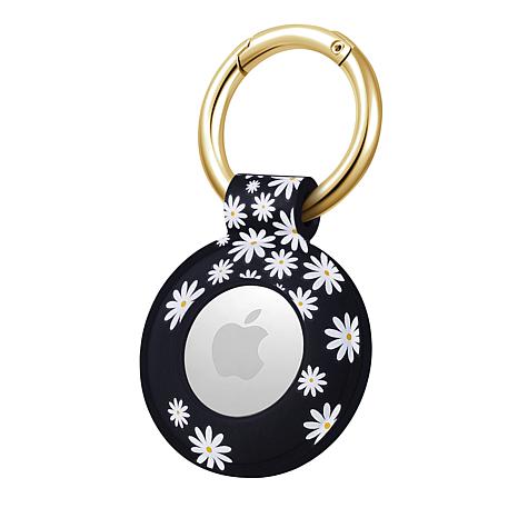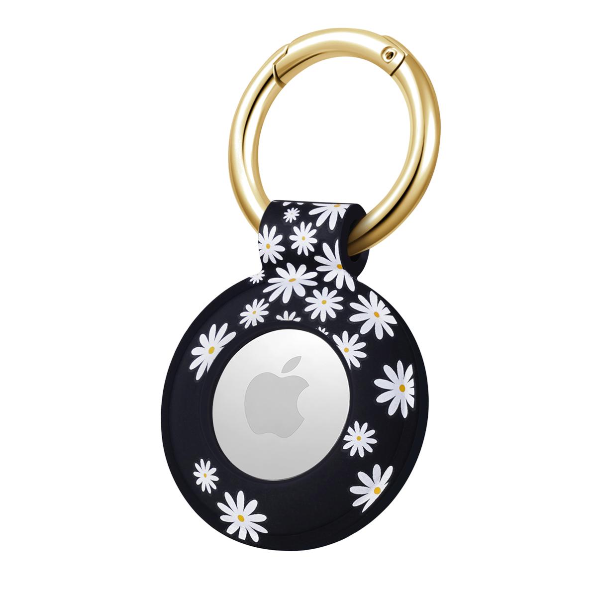 This cover is made of high-quality, durable, printed silicone, showcasing a unique and creative navy Dottie and Daisy Darling pattern. The reliable carabiner closure ensures your Apple AirTag stays securely in place, offering peace of mind whether attached to your keys, backpack, handbag, pet collar or any other item.