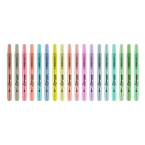 Color, doodle and highlight with a brilliant array of 18 different colors. All highlighters have a chisel tip for both thin and thick lines, and are refillable to reduce waste. The markers feature silent clicking, and the pocket-safe clip automatically retracts when the highlighters are clipped on notebooks or pockets. An advanced sealing mechanism automatically covers the tip to prevent ink from drying out. This bundle features both neutral and vintage colors.