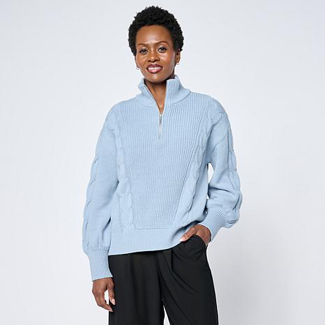 WynneLayers Cotton Blend Cable Detail 1/2-Zip Sweater