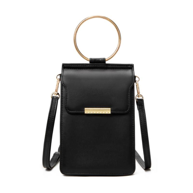 Our phone crossbody bag offers hands-free carrying for your phone and other essentials. Stay organized with a compartment for all of your credit cards. Crossbody strap and round metal handle add function and form to this must-have. This purse is your chic and functional companion. With its sleek design and sumptuous vegan leather, it effortlessly elevates any outfit while securely holding your essentials. Optimize your daily routine with a touch of luxury and organization.