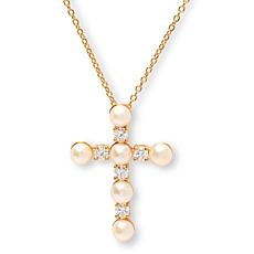 Bright Halo Lab-Grown Diamond & Cultured Pearl Cross Pendant Necklace- Pricing