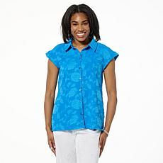 "As Is" WynneCollection Textured Crinkle Button-Down Shirt