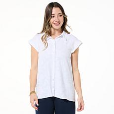 "As Is" HUE Button Down Eyelet Top with Scalloped Trim